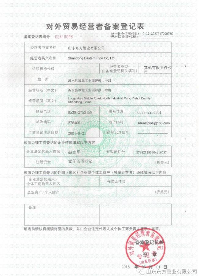 聯(lián)系電話111:15020327769   手機:15020327769    郵箱:sdeastpipe@163.com   地址:中國、山東、臨沂、沂水