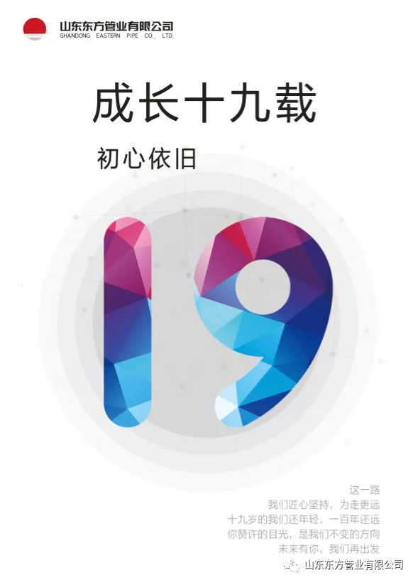 十九春夏 不負(fù)韶華 感謝一路同行 —— 山東東方管業(yè)有限公司成立十九周年